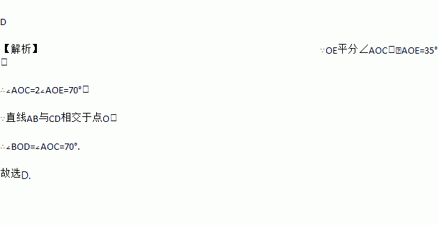 如图,直线AB、CD相交于点O,OE平分∠AOC,若∠AOE=35°,则∠BOD的度数是( )
