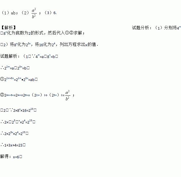 (1)已知4m=a,8n=b,用含a,b的式子表示下列代数式: ①求:22m+3n的值,