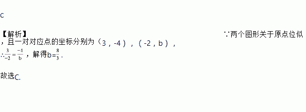 两个图形关于原点位似,且一对对应点的坐标分别为(3,-4),(-2,b),则b的取值为( )