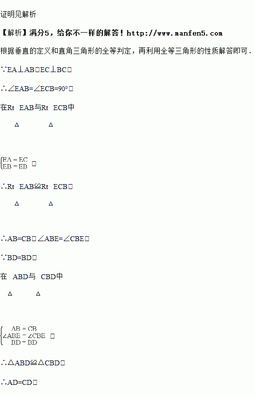 如图,在四边形ABCD中,点E是对角线BD上的一点,EA⊥AB,EC⊥BC,且EA=EC.求证:AD=CD.