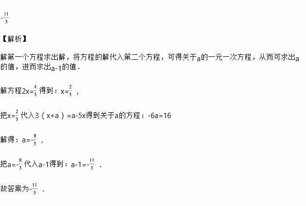 若 与3(x+a)=a-5x有相同的解,那么a-1=_______.