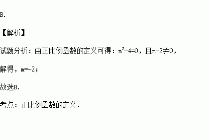 若y=(m-2)x+(m2-4)是正比例函数,则m的取值是( )