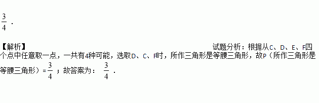 如图,在3×3的方格中,A、B、C、D、E、F分别位于格点上,从C、D、E、F四点中任取一点,与点A、B为顶点作三角形,则所作三角形为等腰三角形的概率是__.