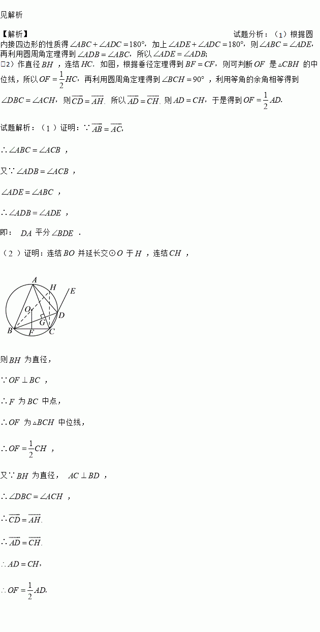 已知:如图, 内接于⊙, , 是上一点(不与点, 重合),延长至点.