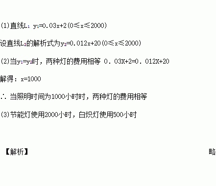 (小时)的函数图象,假设两种灯的使用寿命都是2000小时,照明效果一样。