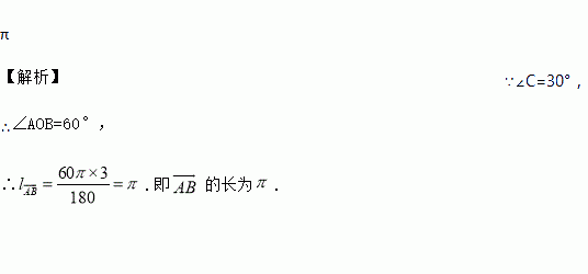 如图,A、B、C是⊙O上的三点,若∠C=30°,OA=3,则弧AB的长为_____.(结果保留π)