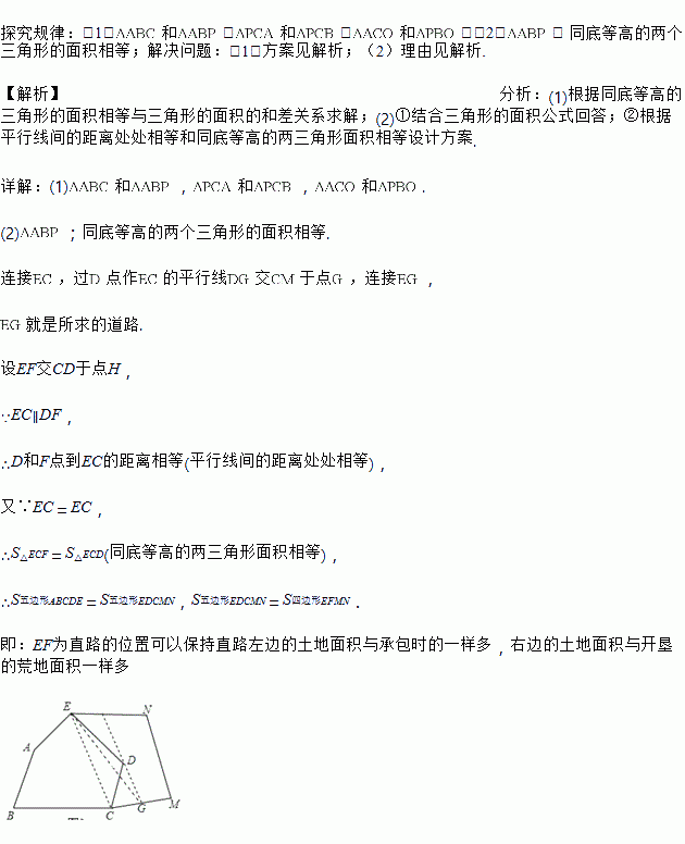 修一条直路,直路修好后,要保持直路左边的土地面积与承包时的一样多.请你用以上的几何知识,按张大爷的要求设计出修路方案.(不计分界小路与直路的占地面积)![]()
