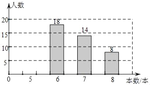 中央电视台的“朗读者”节目激发了同学们的读书热情,为了引导学生“多读书,读好书”,某校对八年级部分学生的课外阅读量进行了随机调查,整理调查结果发现,学生课外阅读的本书最少的有5本,最多的有8本,并根据调查结果绘制了不完整的图表,如图所示: