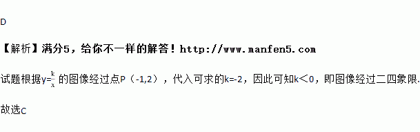 已知反比例函数的图像经过P(-1,2),则这个函数的图像位于( )