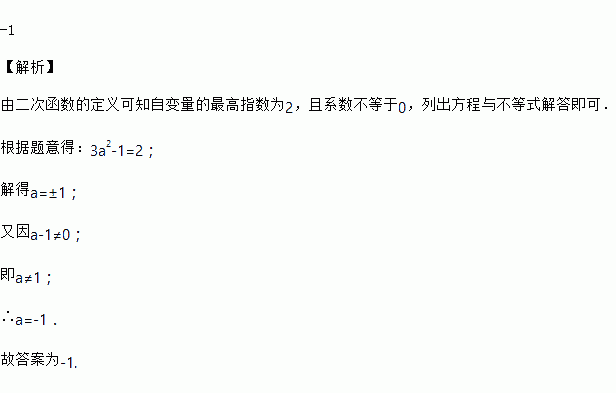 若y=(a-1)是关于x的二次函数,则a=_______.