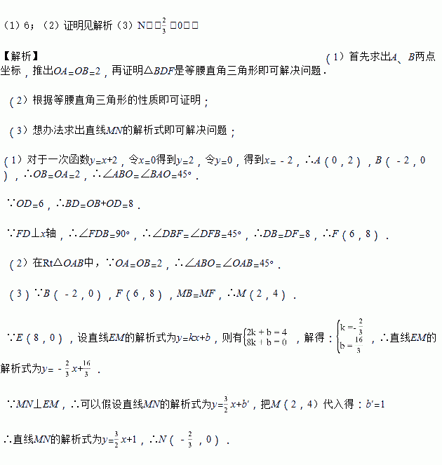 如图1,一次函数y=x+2的图象交y轴于点A,交x轴于点B,点E在x轴的正半轴上,OE=8,点F在射线BA上,过点F作x轴的垂线,点D为垂足,OD=6.