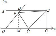 9.分析 设PO的长为x,作PM⊥OQ于M,由矩形的性质和已知条件得出△OPM是等腰直角三角形,得出OM=PM=$\frac{\sqrt{2}}{2}$x,由已知条件得出OQ=$\sqrt{2}$OP=$\sqrt{2}$x,得出MQ=$\frac{\sqrt{2}}{2}$x=OM,因此OP=PQ,证出△BCQ是等腰直角三角形,得出QC=BC=2,求出OQ=OC-CQ=4,得出方程$\sqrt{2}$x=4,解方程即可.