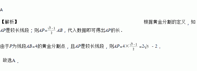 已知P是线段AB的黄金分割点(AP>PB),AB=4,那么AP的长是( )