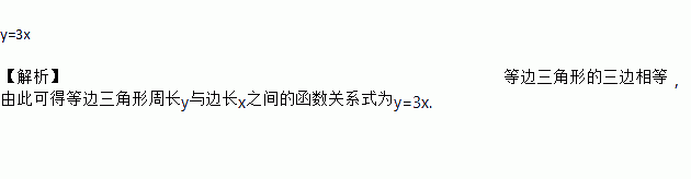若等边三角形的边长是xcm,周长为ycm,则y与x的函数表达式是______.