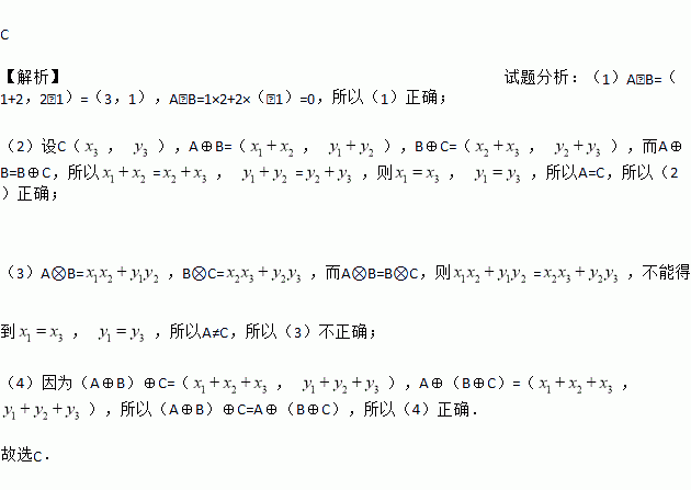 (4)对任意点A、B、C,均有(A⊕B)⊕C=A⊕(B⊕C)成立,其中正确命题的个数为( )