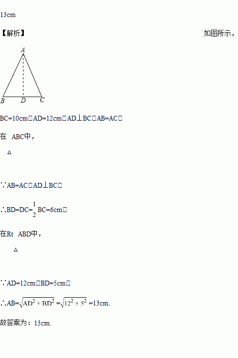 底边长为10cm,底边上的高为12cm的等腰三角形的腰长为___________。