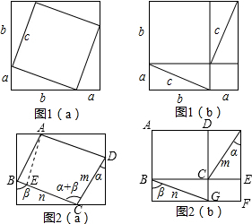 解:如图2(a),原来内部的正方形变成了一个平行四边形,m,n为相邻两边,其夹角为α+β,