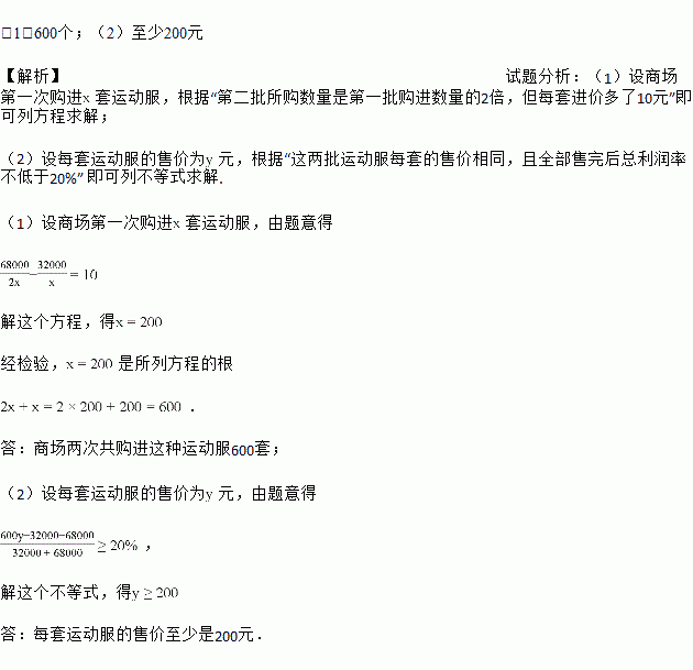 某商场销售“喜羊羊”玩具,预测该产品能够畅销,就用32000元购进了一批这种玩具,上市后很快脱销,商场又用68000元购进第二批这种玩具,所购数量是第一批购进数量的2倍,但每个进价多了10元.