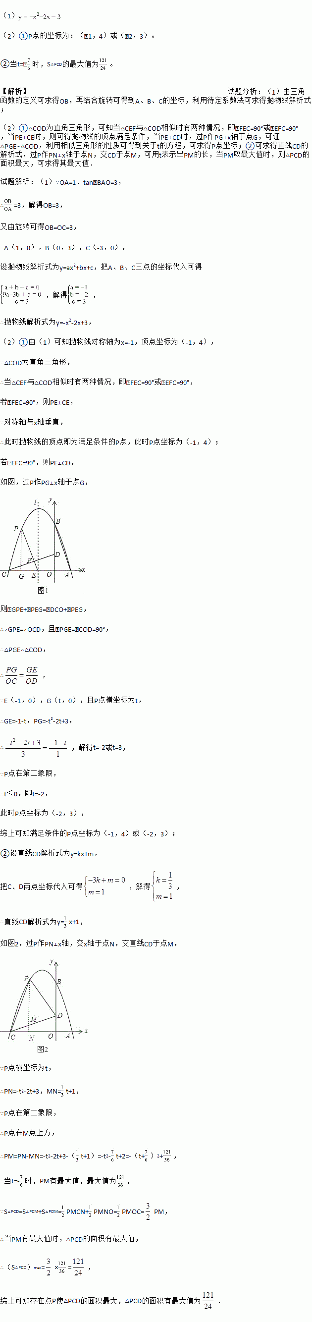 ②是否存在一点P,使△PCD的面积最大?若存在,求出△PCD的面积的最大值;若不存在,请说明理由.