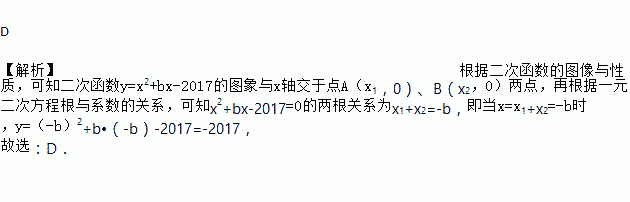 已知,二次函数y=x2+bx﹣2017的图象与x轴交于点A(x1,0)、B(x2,0)两点,则当x=x1+x2时,则y的值为( )