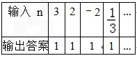 | 输入 n | 3 | 2 | -2 |