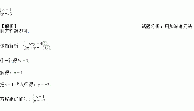若二元一次方程组的解为则a-b=( )