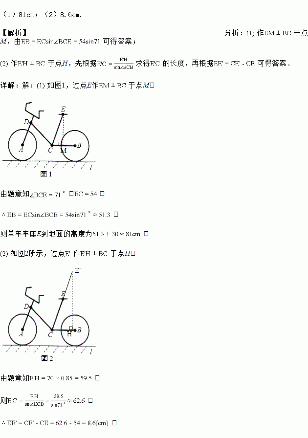 小明的胯高为70cm,现将车座E调整至座椅舒适高度位置![]()