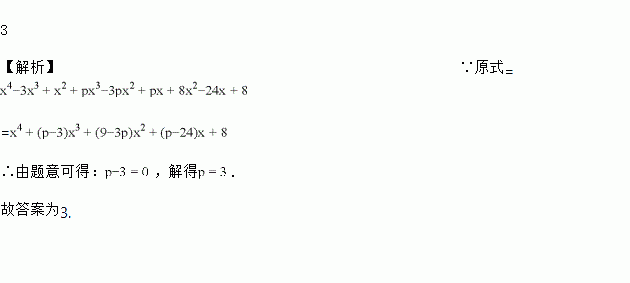 若(x2+px+8)•(x2﹣3x+1)的结果中不含x3项,则P=________,