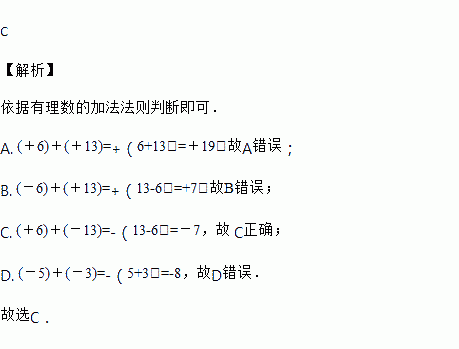A. (+6)+(+13)=+7 B. (-6)+(+13)=-19