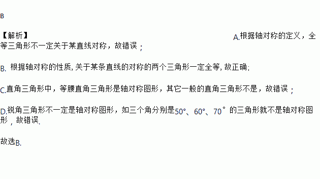 A. Á½¸öÈ«µÈµÄÈý½ÇÐÎÒ»¶¨¹ØÓÚijÌõÖ±Ïß¶Ô³Æ B. ¹ØÓÚijÌõÖ±ÏߵĶԳƵÄÁ½¸öÈý½ÇÐÎÒ»¶¨È«µÈ
