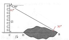 如图,某同学在楼房的A处测得荷塘的一端B处的俯角为,荷塘另一端D处与C、B在同一条直线上,已知32米, 16米,求荷塘宽BD为多少米? 取,结果保留整数