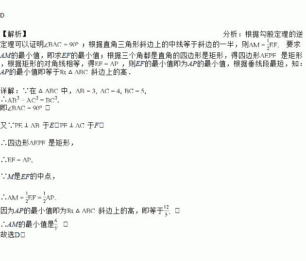 如图,在中,为边BC上一动点,于于为EF中点,则AM的最小值为