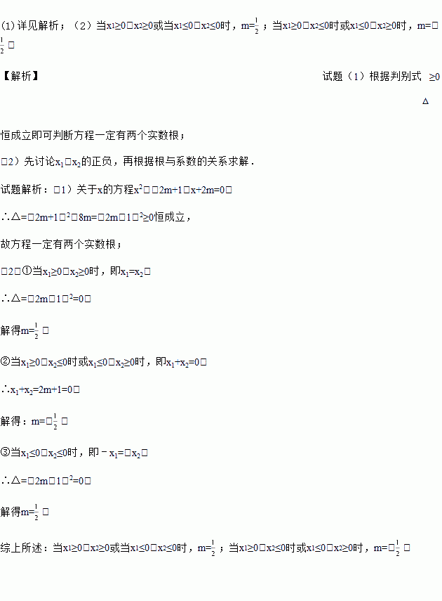 (2)若方程的两根为x1,x2,且|x1|=|x2|,求m的值.