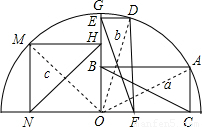 解:连接OM、OD、OA、根据矩形的对角线相等,得BC=OA,EF=OD,NH=OM.再根据同圆的半径相等,得a=b=c.