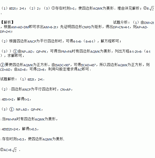 ①使四边形AQMK为为菱形,若存在,求出t的值;若不存在,请说明理由