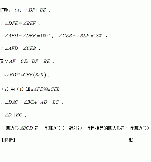 如图:在平行四边形ABCD中,用直尺和圆规作∠BAD的平分线交BC于点E(尺规作图的痕迹保留在图中了),连接EF.