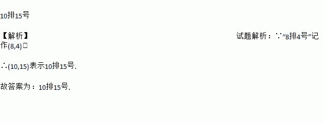 在电影票上,如果将“8排4号”记作(8,4),那么(10,15)表示______