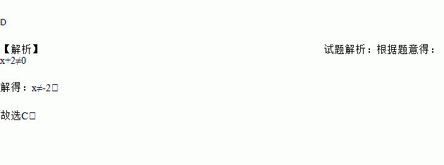 A. x>﹣2 B. x≠0 C. x>﹣2且x≠0 D. x≠﹣2