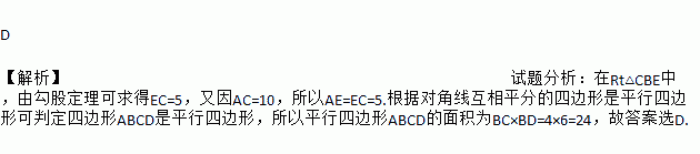如图,在四边形ABCD中,对角线AC,BD相交于点E,∠CBD=90°,BC=4,BE=ED=3,AC=10,则四边形ABCD的面积为( )