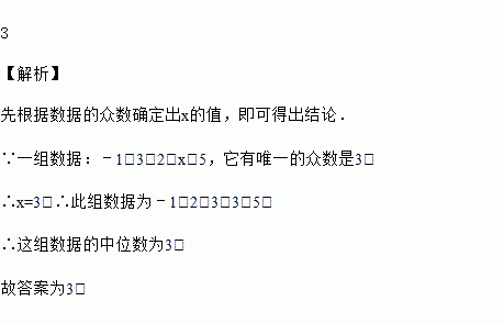 一组数据:﹣1,3,2,x,5,它有唯一的众数是3,则这组数据的中位数是_____.