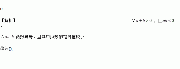 C. 、异号且正数的绝对值较小 D. 、异号且负数的绝对值较小
