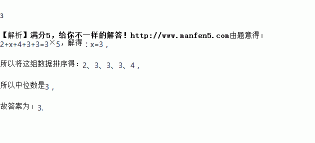 一组数据2,x,4,3,3的平均数是3,则这组数据的中位数是__.
