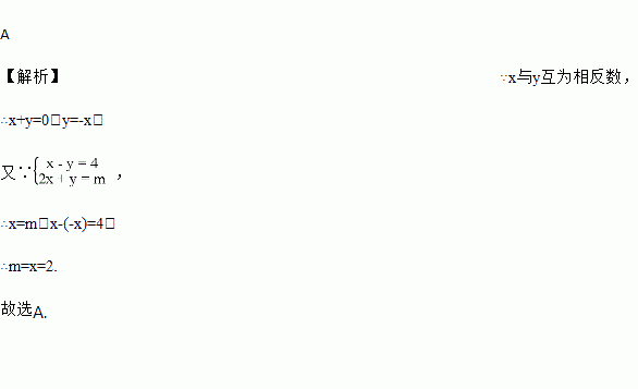 已知方程组中的 x,y互为相反数,则m的值为( )