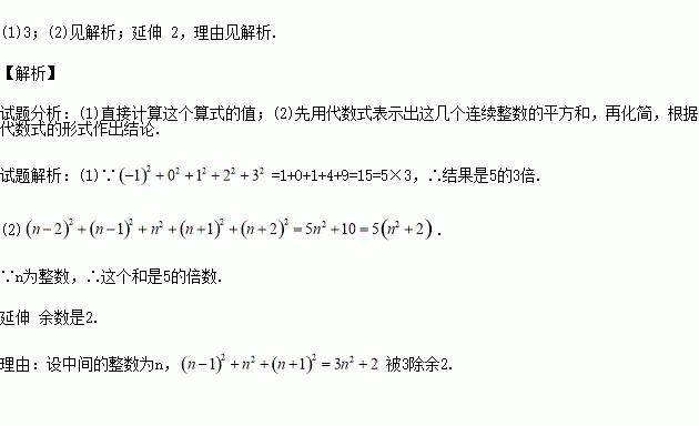 延伸 任意三个连续整数的平方和被3整除余数是几呢?请写出理由.