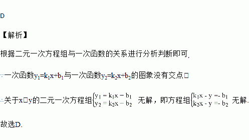 若一次函数y1=k1x+b1与一次函数y2=k2x+b2的图象没有交点,则方程组的解的情况是( )