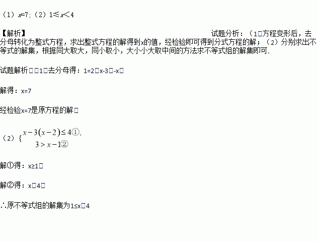 (1)解方程: = 2+. (2) 解不等式组:
