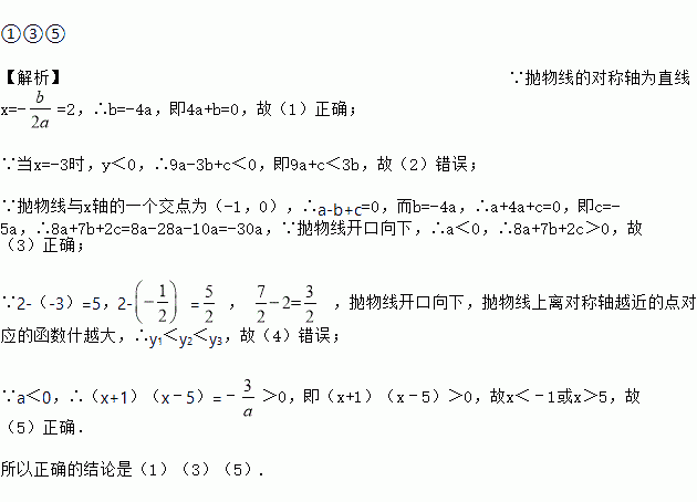 ,y3)在该函数图象上,则y1<y3<y2;(5)若方程a(x+1)(x﹣5)=﹣3的两根为x1和x2,且x1<x2,则x1<﹣1<5<x2.其中正确的结论是_____.