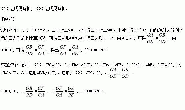 如图,已知EC∥AB,∠EDA=∠ABF.