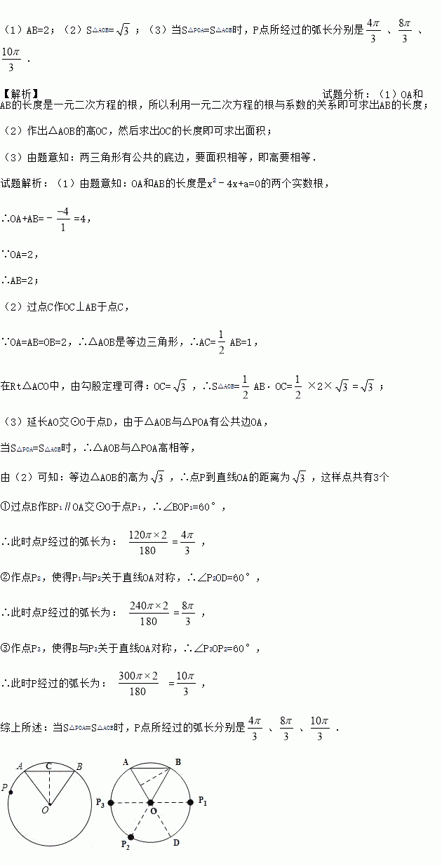 (3)⊙O上一动点P从A点出发,沿逆时针方向运动一周,当S△POA=S△AOB时,求P点所经过的弧长(不考虑点P与点B重合的情形).