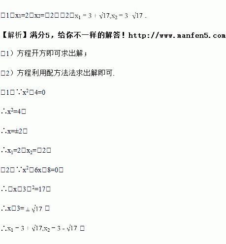 (1)x2﹣4=0
